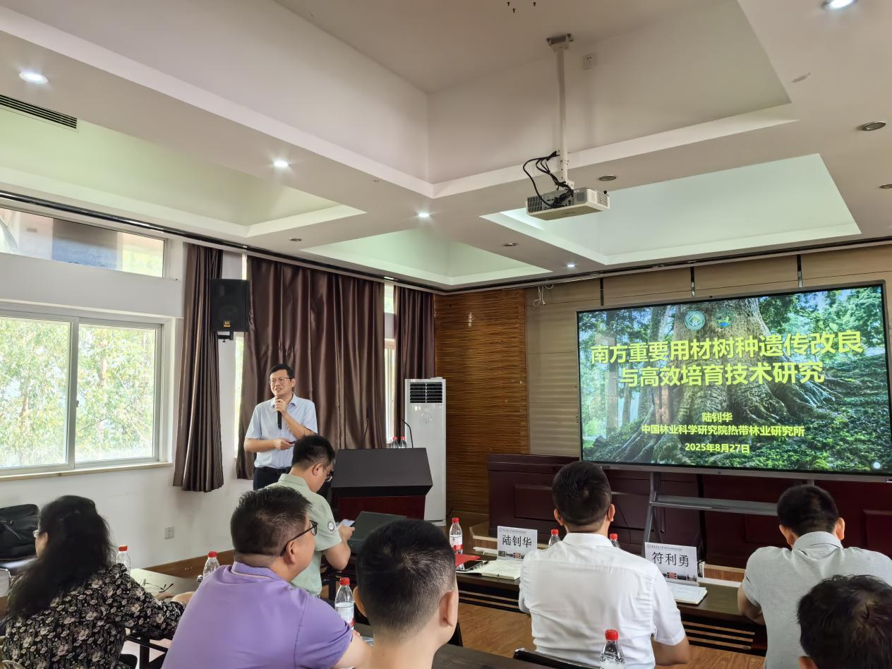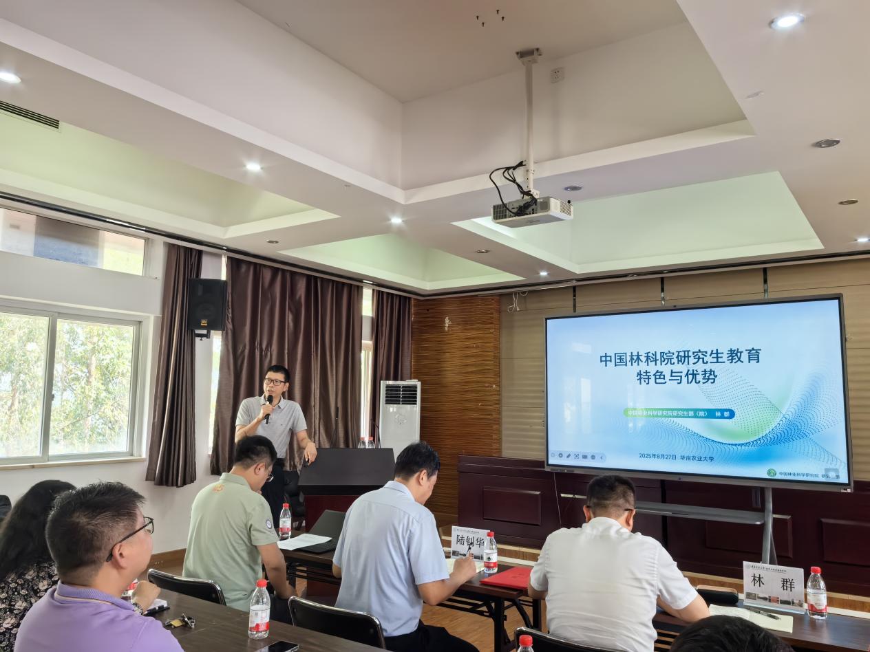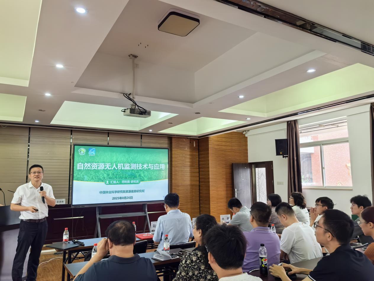 在学术报告环节,三位专家分别围绕不同主题作了精彩演讲。符利勇研究员以《自然资源无人机监测技术与应用》为题,系统阐述了无人机技术在自然资源调查、监测与管理中的前沿应用,展示了高科技如何赋能现代林业资源管理。陆钊华研究员作了题为《南方重要用材树种遗传改良与高效培育技术研究》的报告,深入探讨了南方主要用材树种的育种策略与培育技术,为林业高质量发展提供了重要科技支撑。林群主任则围绕《中国林科院研究生教育特色与优势》,分享了中国林科院在研究生培养方面的创新机制与突出成效,为我院研究生教育工作提供了宝贵经验。
