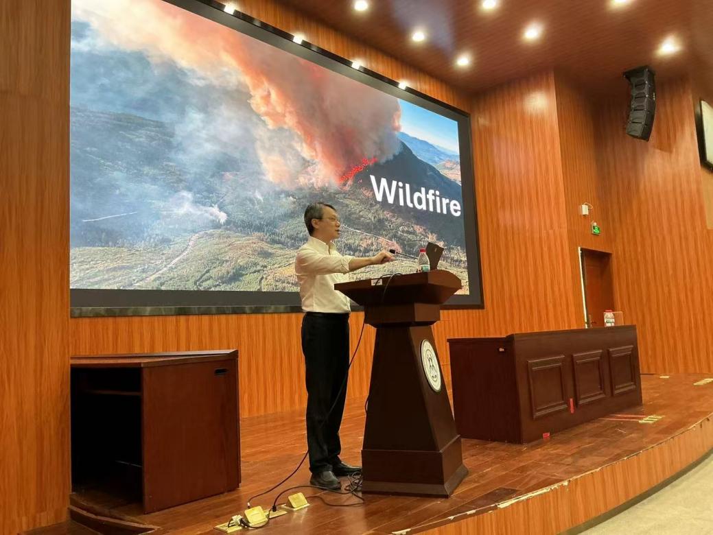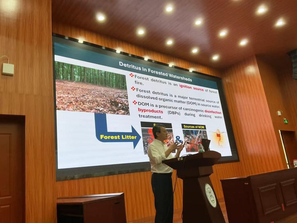 报告中,周达诚教授系统阐述了全球气候变化背景下野火、飓风等极端事件对森林水文及碳循环的影响,结合美国加州野火、南卡罗来纳州飓风等案例,分析了极端事件后森林水体中溶解有机碳组成与浓度的变化规律。他指出,野火不仅会瞬间释放大量碳与重金属,还将对水文路径及土壤性质产生长期影响,持续影响水质可达十余年。