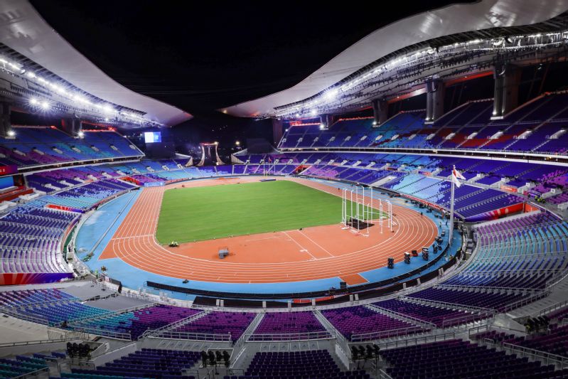 十五运广东奥林匹克体育中心开幕式后完成草坪切换
