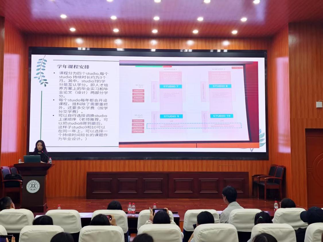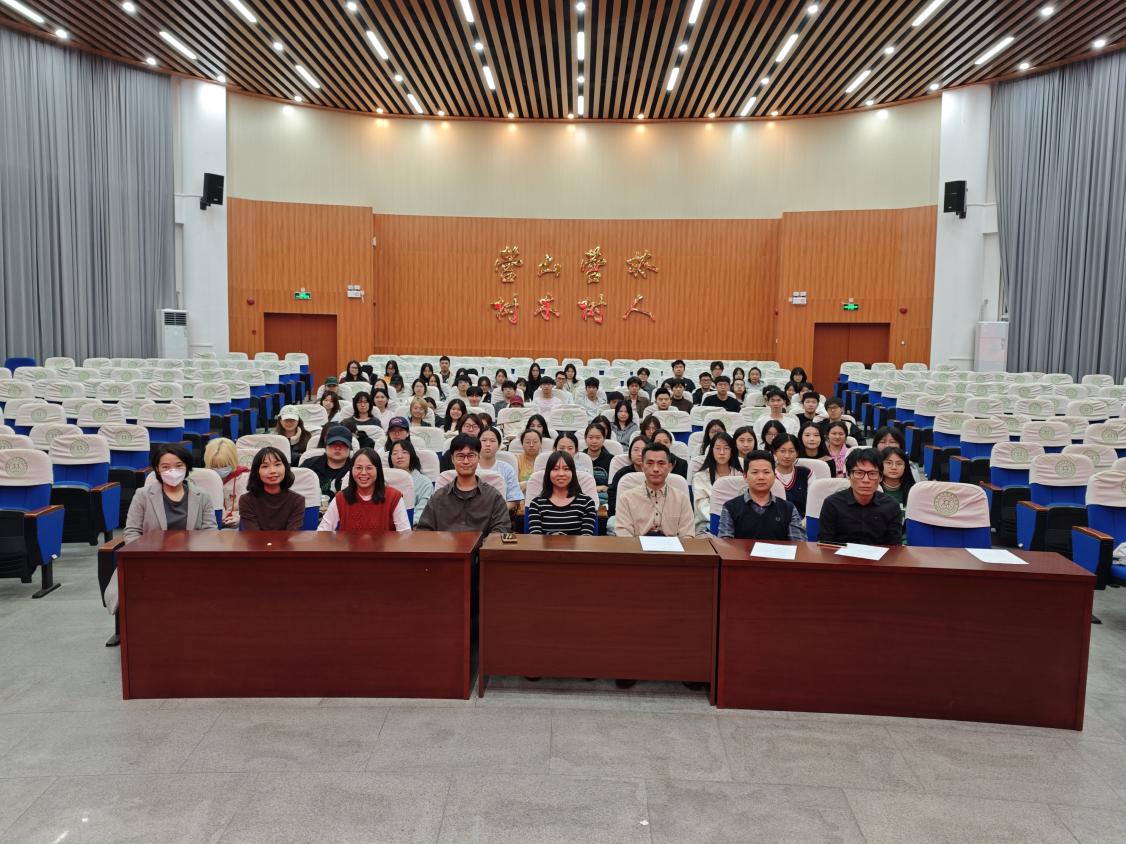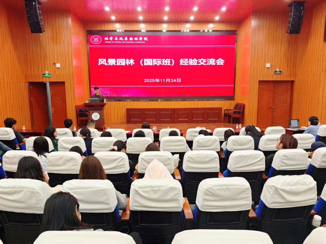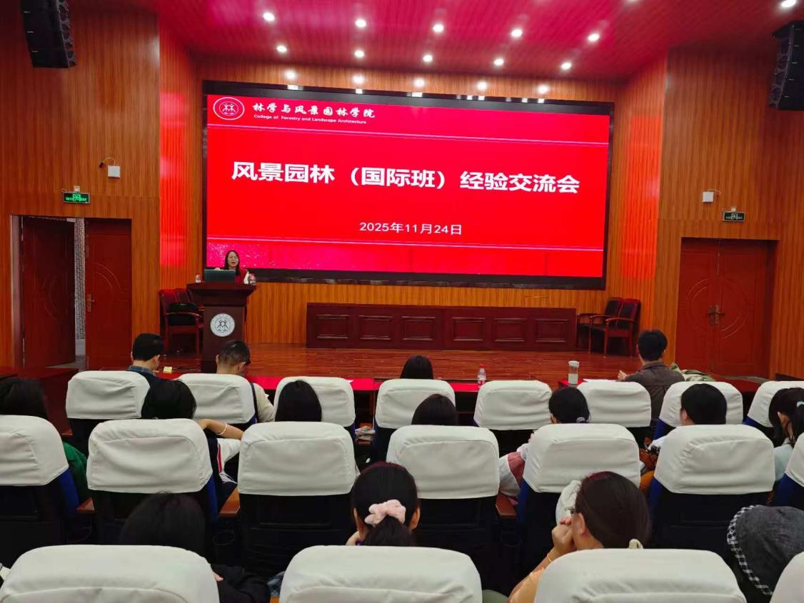 2025年11月24日下午,林学与风景园林学院在院楼127报告厅组织召开风景园林(国际班)海外学习经验交流会。学院副院长高伟教授、专业主任陈崇贤副教授、教学科研办公室主任叶晓燕老师、教务员谭颖老师、全体国际班班主任及各年级学生共同参会。