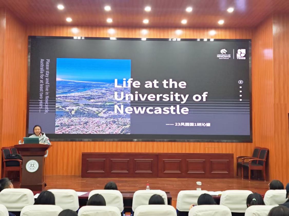 在经验分享环节,2023级周煜翔、胡沁鋆、王倩吾三位学生代表结合在纽卡斯尔大学等合作院校的课程实习经历,详细介绍了海外课程设置、案例实习内容及学习体会,并就硕士课程衔接、学业规划等方面为低年级同学提出建议,展现了国际班“理论与实践并重、国内与国际衔接”的办学特色。