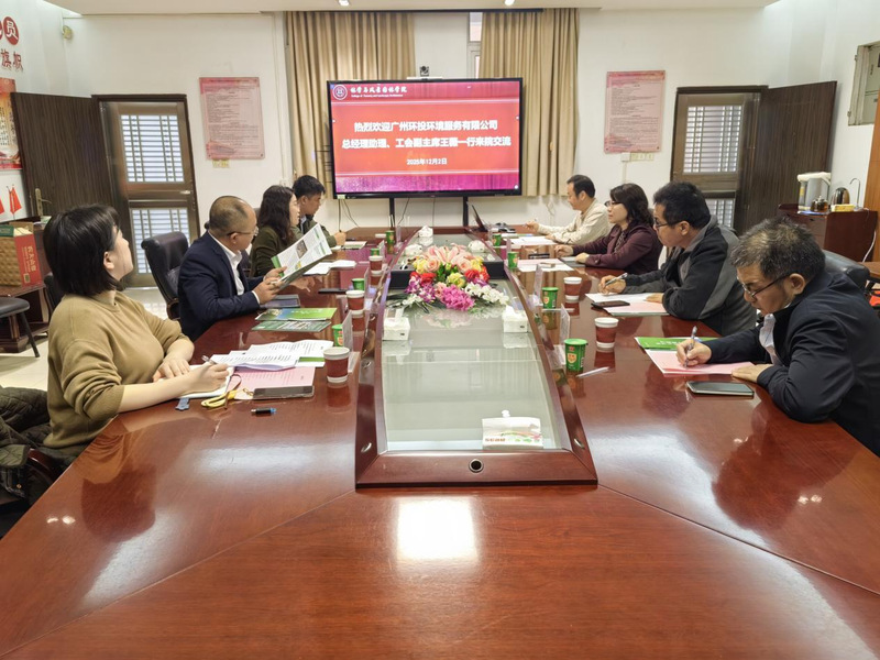 12月2日,广州环投环境服务有限公司总经理助理、工会副主席王薇一行来我院,并举行交流座谈会。座谈会由学院院长何茜主持,专业老师单体江、古德泉、黄家平等参加座谈。