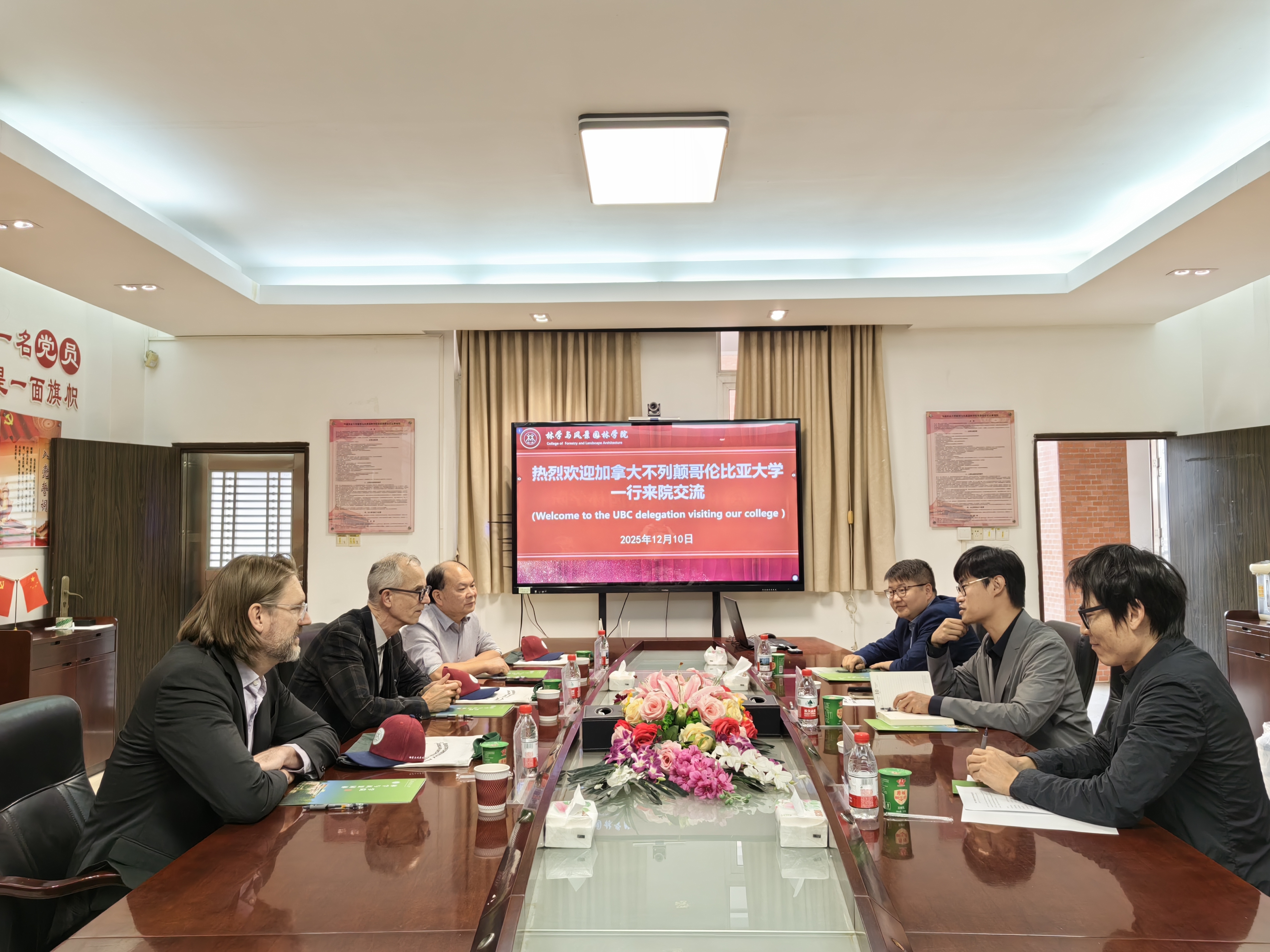 2025年12月10日下午,我院与加拿大不列颠哥伦比亚大学(UBC)林学与环境管理学院举行座谈交流会,围绕人才培养、科研合作等议题进行深入探讨。UBC林学与环境管理学院院长Dr. Robert Kozak、副院长Dr. Guangyu Wang、木材科学系教授Dr. Scott Renneckar一行到访。我院副院长高伟教授、风景园林专业主任陈崇贤副教授、森林培育教研室主任邱权副教授等参会交流。