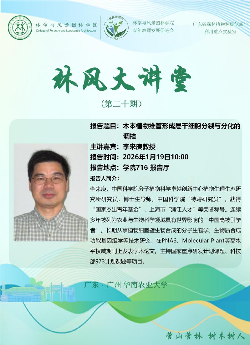 林风大讲堂:木本植物维管形成层干细胞分裂与分化的调控