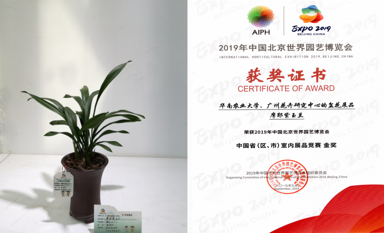 上述新品种由我院花卉育种和产业化技术创新团队培育,该团队自1991年开始从事花卉遗传育种和产业化技术研究,现已建成具有完全自主知识产权的兰花(大花蕙兰、杂交兰、国兰、蝴蝶兰等)产业化链,培育的花卉新品种有85个通过省级审(评)定,累计获得国家植物新品种权37项、国家发明专利10项,先后制定国家行业标准2项、广东省地方标准5项。团队培育的玉女兰、玉香兰、金童兰、小凤兰、玉缘兰等新品种为广东省主推品种,在各类展览会上屡获奖项。其中,在2019年中国北京世界园艺博览会上,玉女兰和玉叶兰荣获特等奖,摩耶紫玉兰荣获金奖。