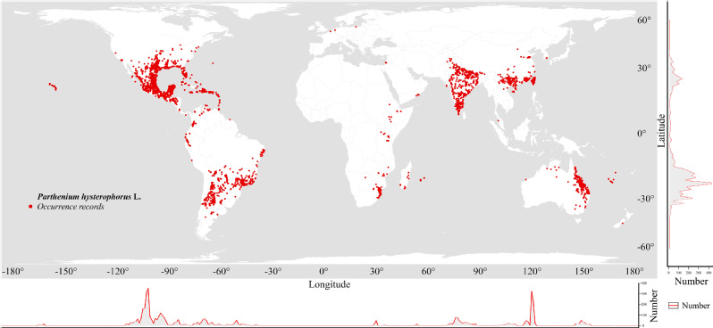 图1 银胶菊(P. hysterophorus)的全球地理分布