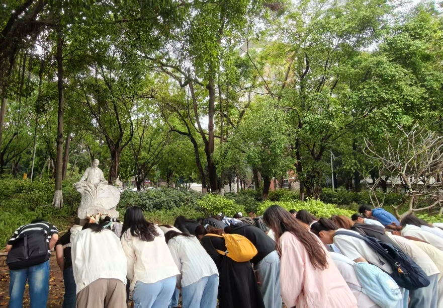 活动现场,同学们怀着崇敬的心情,缓步走向卢永根院士雕像前,整齐列队,行鞠躬礼。在庄重的氛围中,同学们依次走向雕像基座并敬献鲜花,深切缅怀卢永根院士扎根教育、潜心科研、无私奉献的崇高精神与深厚情怀。