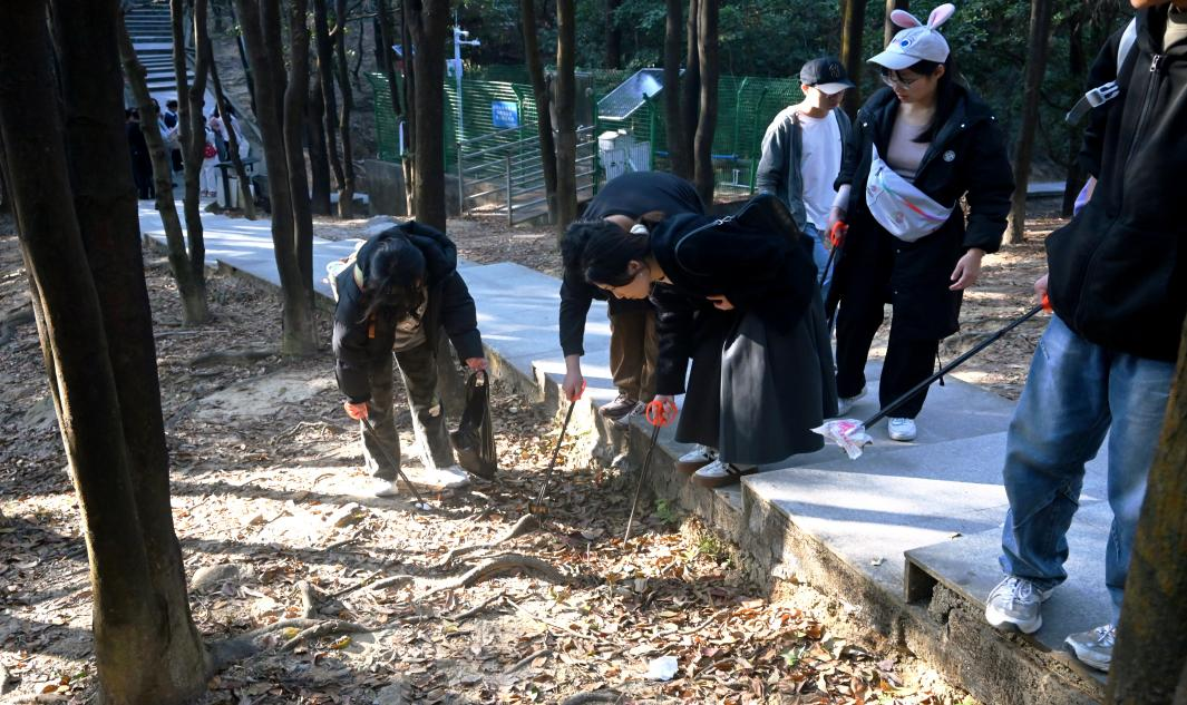 抵达火炉山后,同志们手持垃圾夹、垃圾袋,沿登山主步道及周边支线路径有序开展清洁工作。作为林学相关专业的学生,大家充分发挥专业特长,在实际行动中充分运用所学知识,让专业学习有了更直观的实践载体。